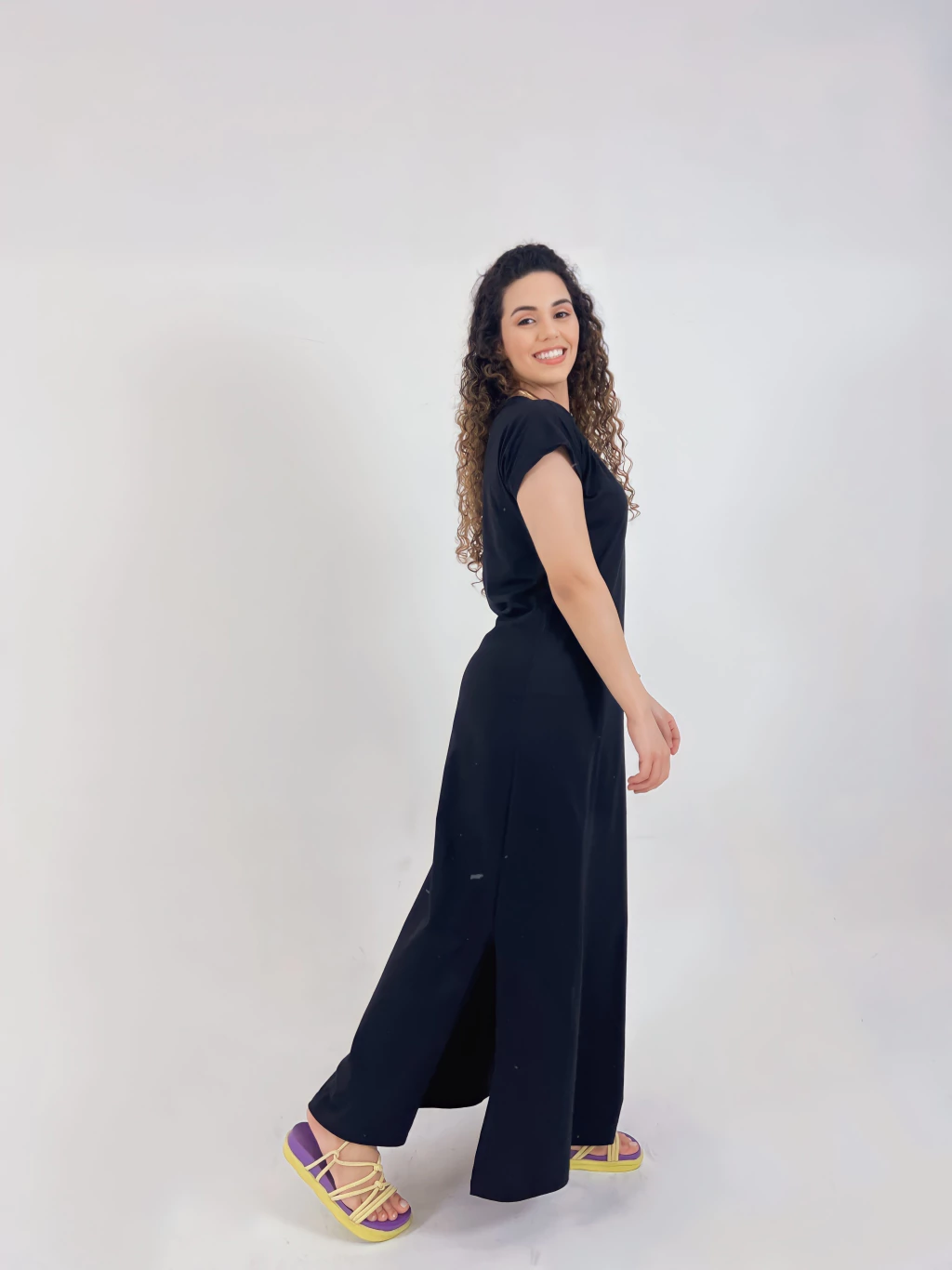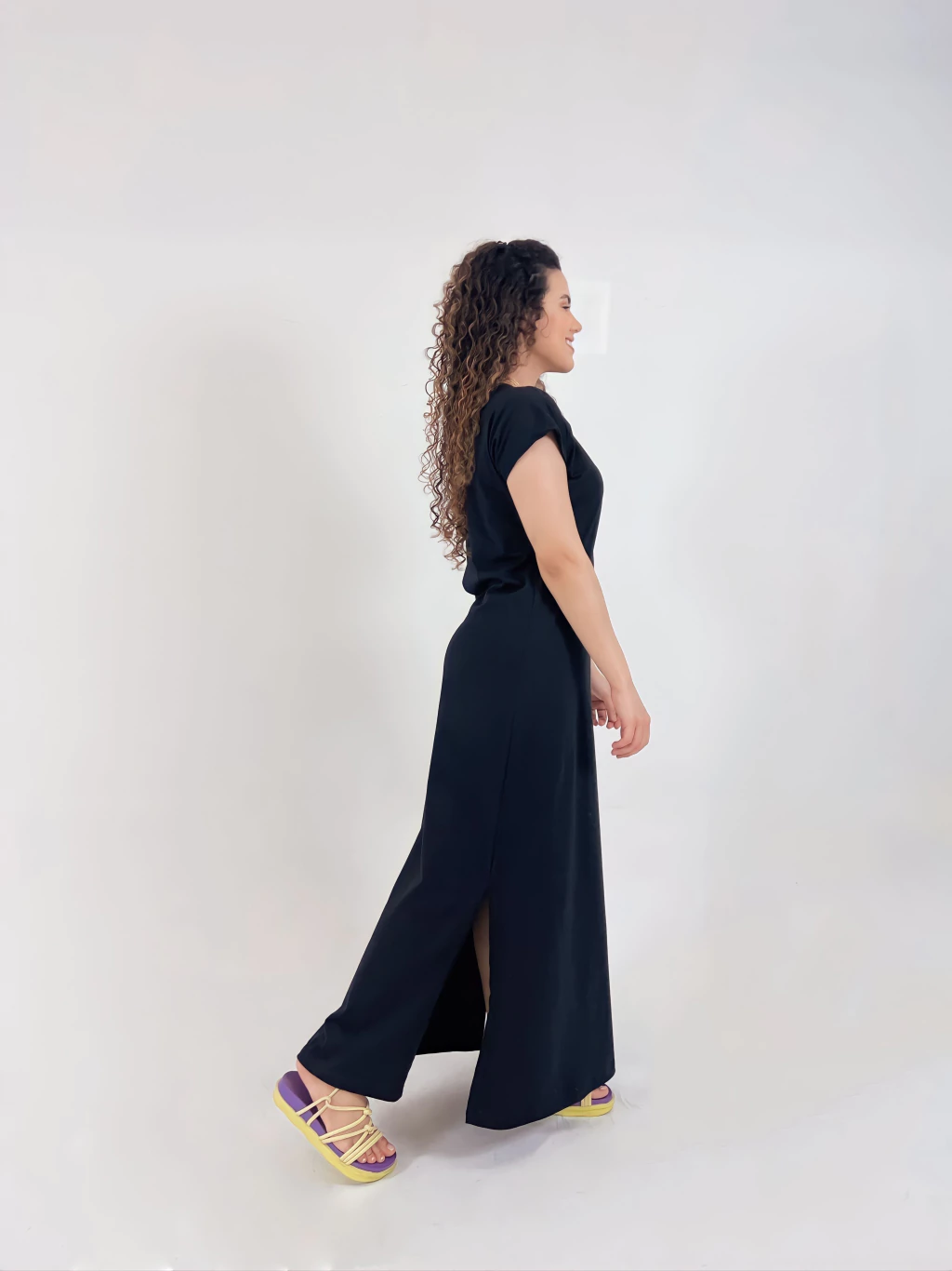 Nosso vestido longo é confeccionado em malha premium com 96% algodão penteado e 4% elastano, oferecendo um toque suave, caimento leve e o conforto do elastano, que proporciona mais liberdade de movimento e uma sensação de frescor ao vestir.